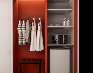 Fresh and soothing — designed to feel open and flowing like water.This room offers comfort and flexibility, ideal for unhurried rest and a convenient workspace.